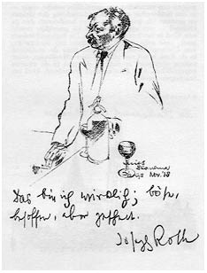 Український єврей Йозеф Рот (1894–1939) увійшов в історію літератури як австрійський письменник та журналіст, автор романів «Марш Радецького», «Йов», «Гробівець капуцинів» тощо. Усе життя він перебував у пошуках власної національної й культурної ідентичності, невтомно коригуючи власну біографію та постійно переїжджаючи — з однієї країни до іншої, із готелю до готелю. Маючи обтяжену спадковість, митець був дуже схильним до депресії, патологічних ревнощів і самокатувань, а після того, як його хвора на шизофренію дружина потрапила до психлікарні, став хронічним алкоголіком. Незадовго до смерті він намалював себе за столиком у кав’ярні, підписавши: «Це я насправді такий: злий, п’яний, але розумний».