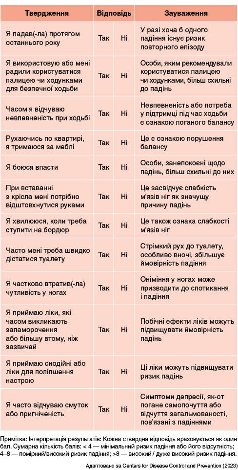 Падіння в похилому віці: оцінювання ризику, аспекти профілактики й менеджменту