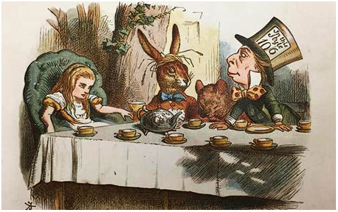 вгоруНазва синдрому пов’язана з іменем головної героїні казки англійського письменника Льюїса Керрола, що була видана 1865 р. (детальніше про Л. Керрола див. у НейроNews, 2020, № 8). Дівчинка Аліса, побігши за Білим Кроликом, через падіння у глибоку нору потрапляє до Країни Див, де з нею трапляються всілякі дива. З-поміж усього іншого вона, зокрема, постійно змінюється в розмірах: ковтнувши із пляшечки з написом «Випий мене» або обмахнувшись віялом, зменшується, а надкусивши тістечко, на якому написано «З’їж мене», — збільшується. Відповідно до коливань зросту змінюється і сприйняття Алісою довколишнього світу: двері, а потім будинок здаються замалими, стіл та щеня— величезними; із її сліз натікає ціле озеро, а власні ноги віддаляються з такою швидкістю, що зрештою зникають із поля зору.