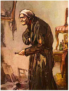 Все звалювалось у комори, і все ставало гнилизною й дірками, і сам він обернувся нарешті в якусь дірку на людстві.