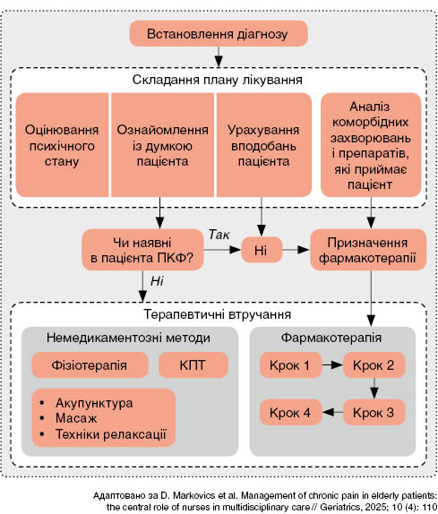 У міру зростання у світі частки осіб похилого віку все більше уваги приділяється проблемам здоров’я, пов’язаним зі старінням (Patel etal., 2013). Серед них хронічний біль (ХБ) посідає особливе місце, оскільки суттєво впливає на фізичні, психічні та соціальні аспекти життя, може призводити до порушення когнітивних функцій (ПКФ), посилення соціальної ізоляції та зниження якості життя (Whitlock etal., 2017). Ефективне купірування болю має вирішальне значення не тільки для полегшення страждань, але й для збереження самостійності пацієнтів, їхніх соціальних зв’язків та загального добробуту (Carta etal., 2023). З огляду на складну етіологію ХБ, лікування часто потребує мультидисциплінарного підходу, що охоплює фармако-, фізіо-, психотерапію та модифікацію способу життя (Rajput etal., 2023).